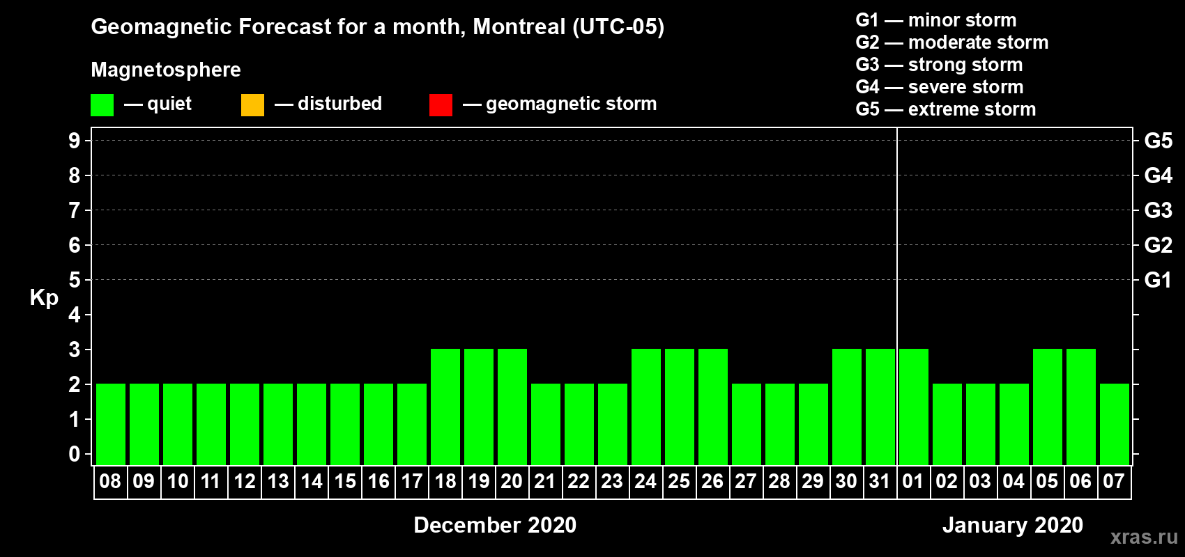 Geomagnetic activity forecast in Montreal — Dec 08, 2019