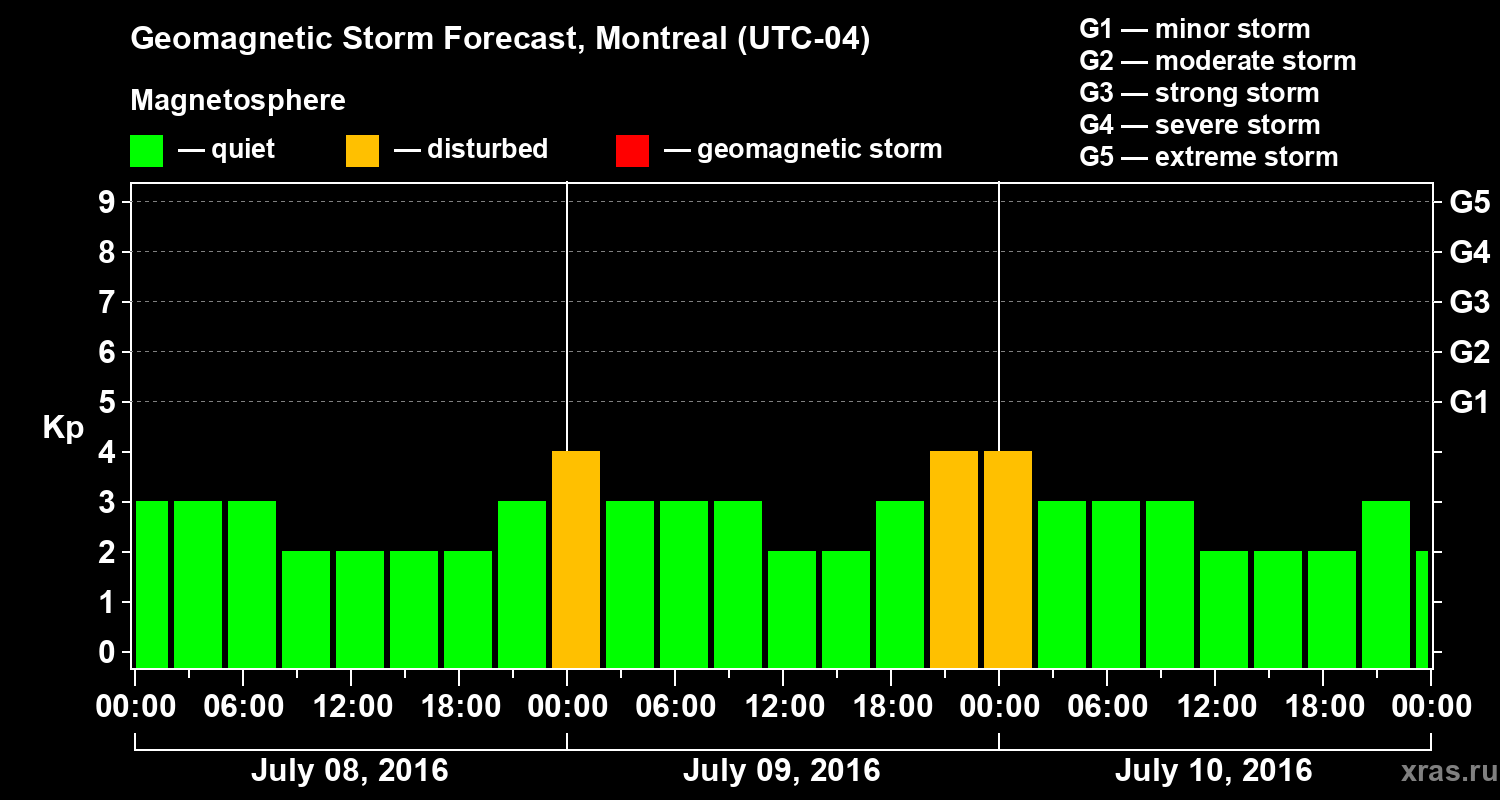Geomagnetic storm forecast in Montreal for Jul 08, 2016