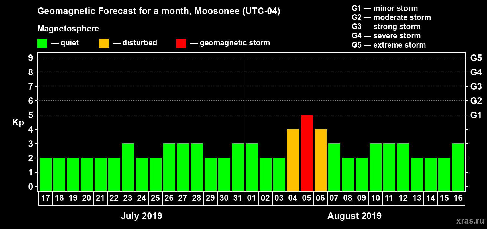 Geomagnetic storm forecast in Moosonee for Jul 17, 2019