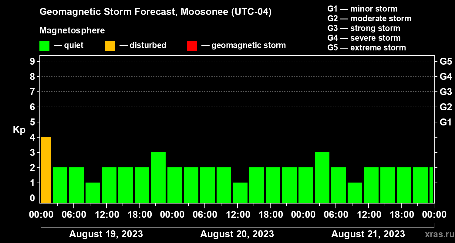 Geomagnetic activity forecast in Moosonee — Aug 19, 2023