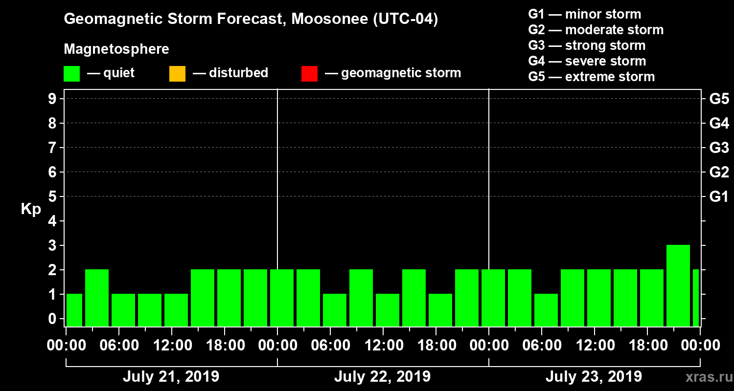 Geomagnetic storm forecast in Moosonee for Jul 21, 2019
