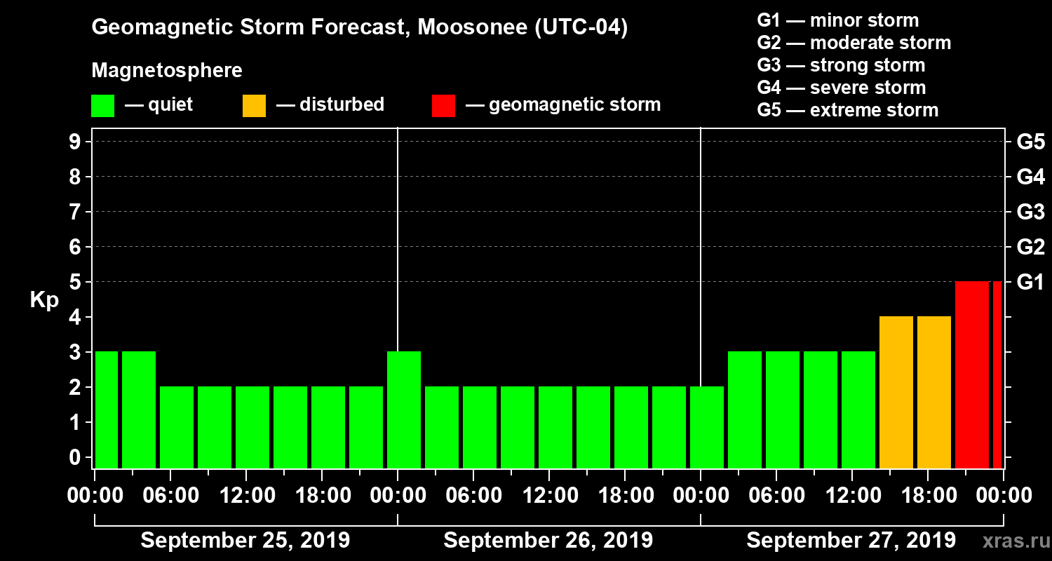 Geomagnetic storm forecast in Moosonee for Sep 25, 2019