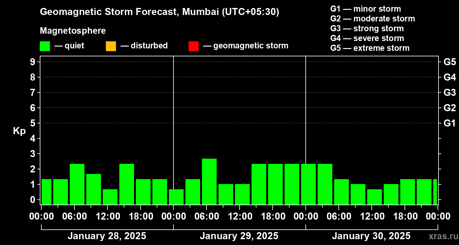 Geomagnetic storm forecast in Mumbai for Jan 28, 2025