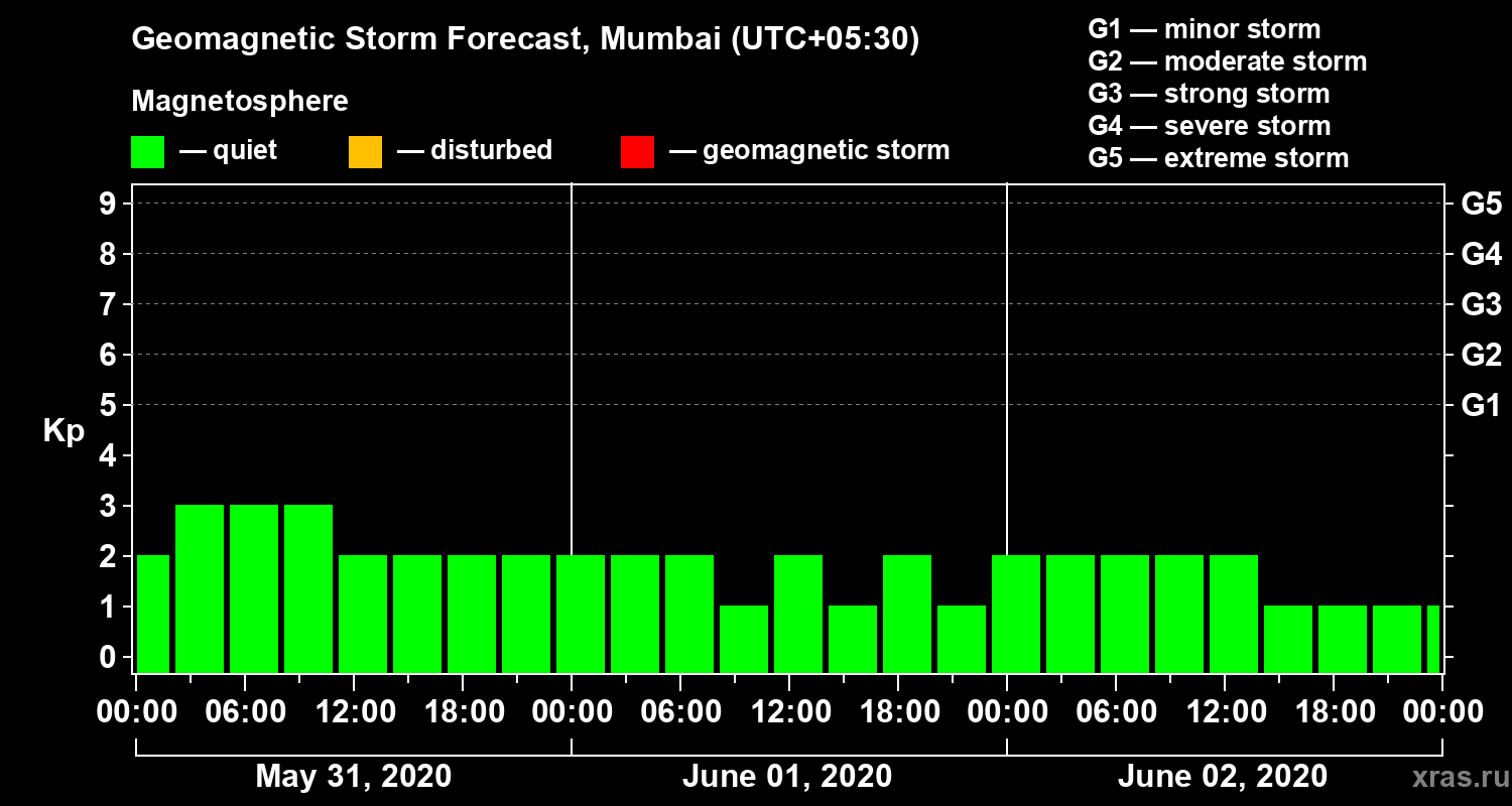 Geomagnetic activity forecast in Mumbai — May 31, 2020
