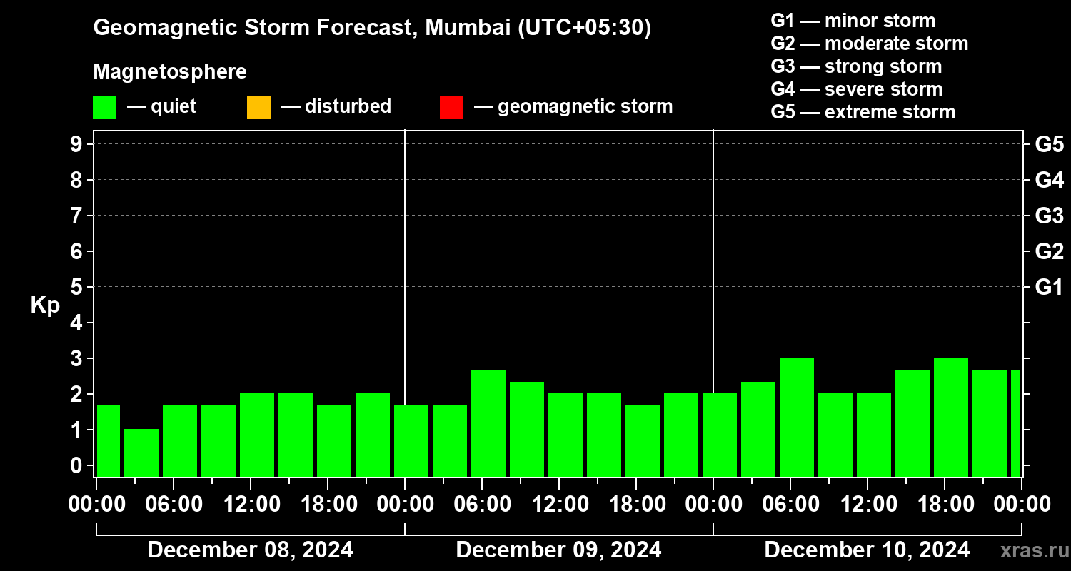 Geomagnetic activity forecast in Mumbai — Dec 08, 2024