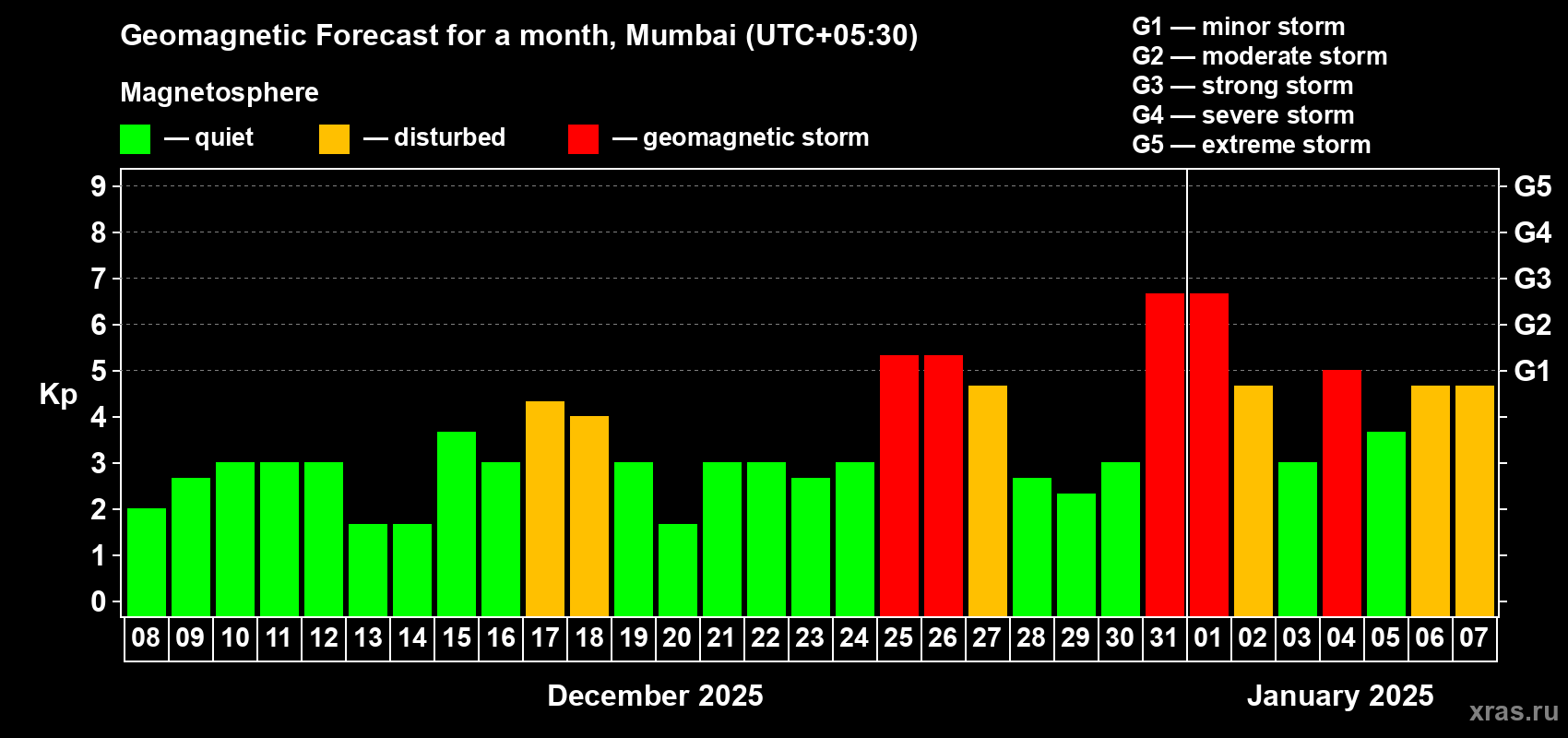 Geomagnetic storm forecast in Mumbai for Dec 08, 2024