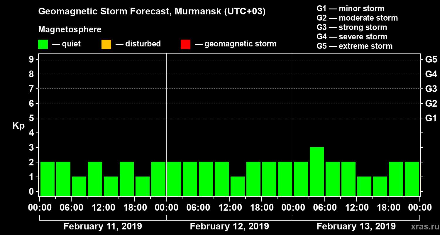 Geomagnetic activity forecast in Murmansk — Feb 11, 2019