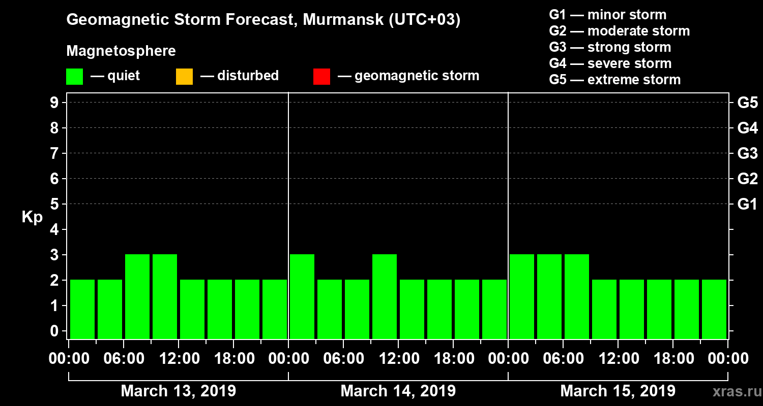 Geomagnetic storm forecast in Murmansk for Mar 13, 2019