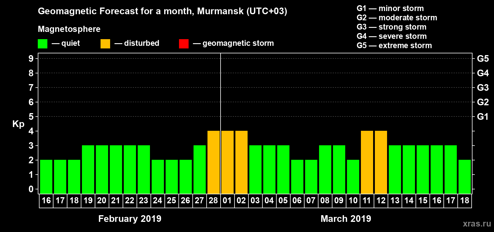 Geomagnetic activity forecast in Murmansk — Feb 16, 2019