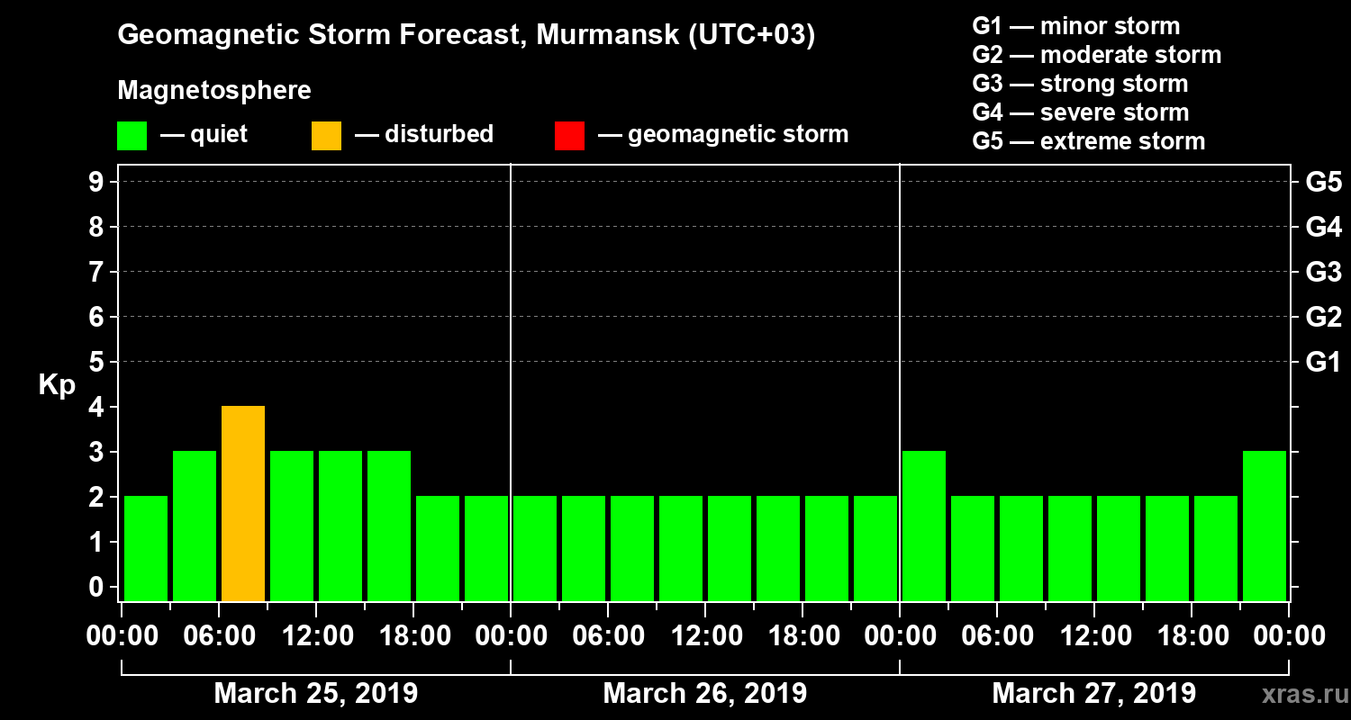 Geomagnetic storm forecast in Murmansk for Mar 25, 2019