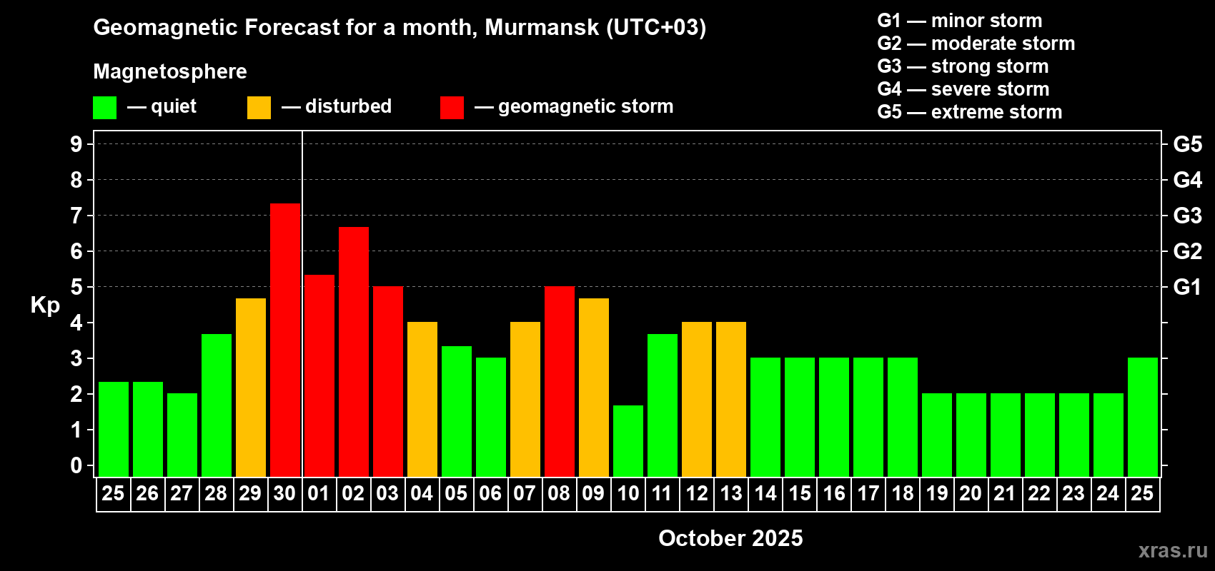 Geomagnetic storm forecast in Murmansk for Sep 25, 2025