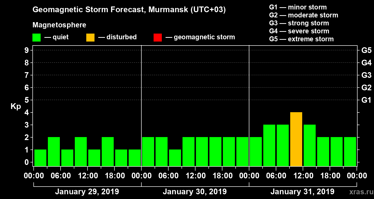 Geomagnetic activity forecast in Murmansk — Jan 29, 2019