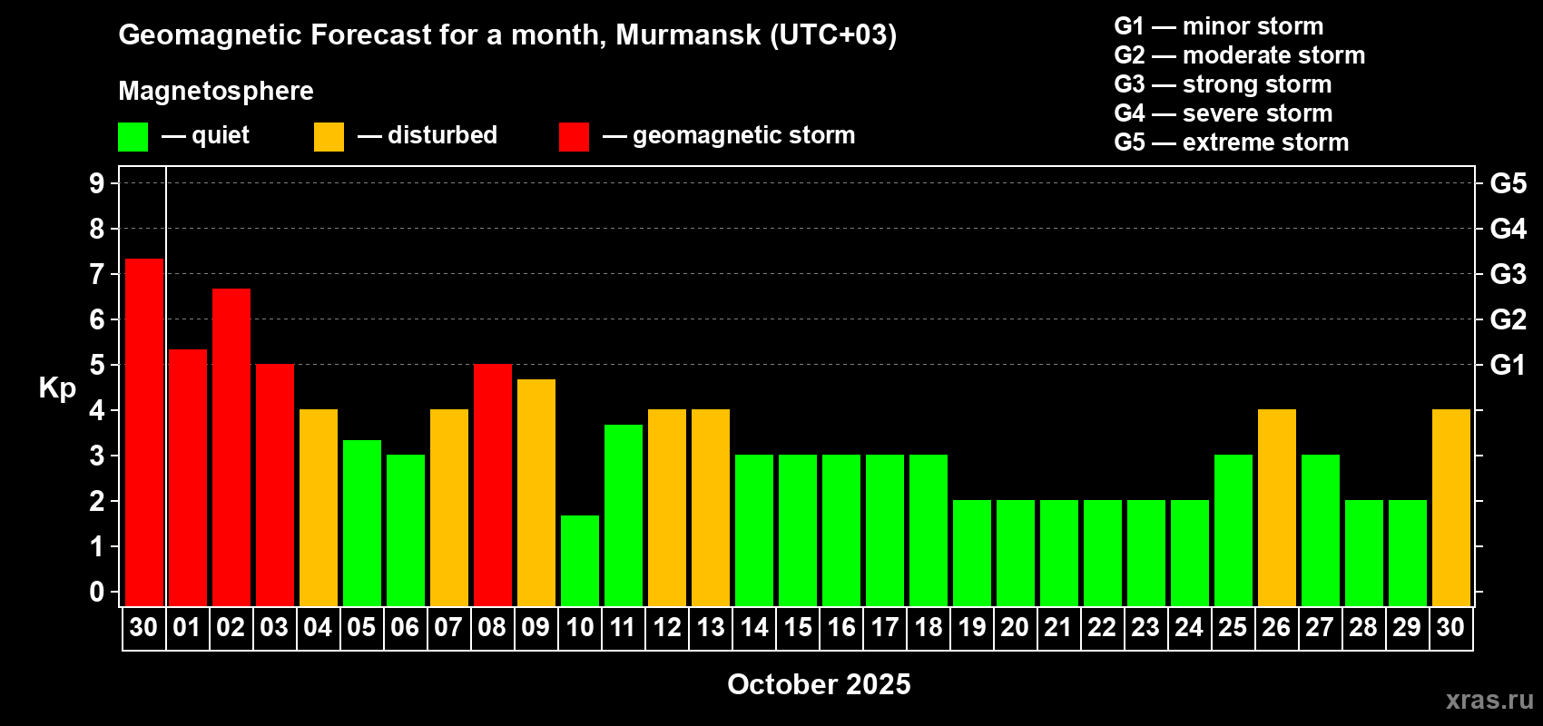 Geomagnetic storm forecast in Murmansk for Sep 30, 2025