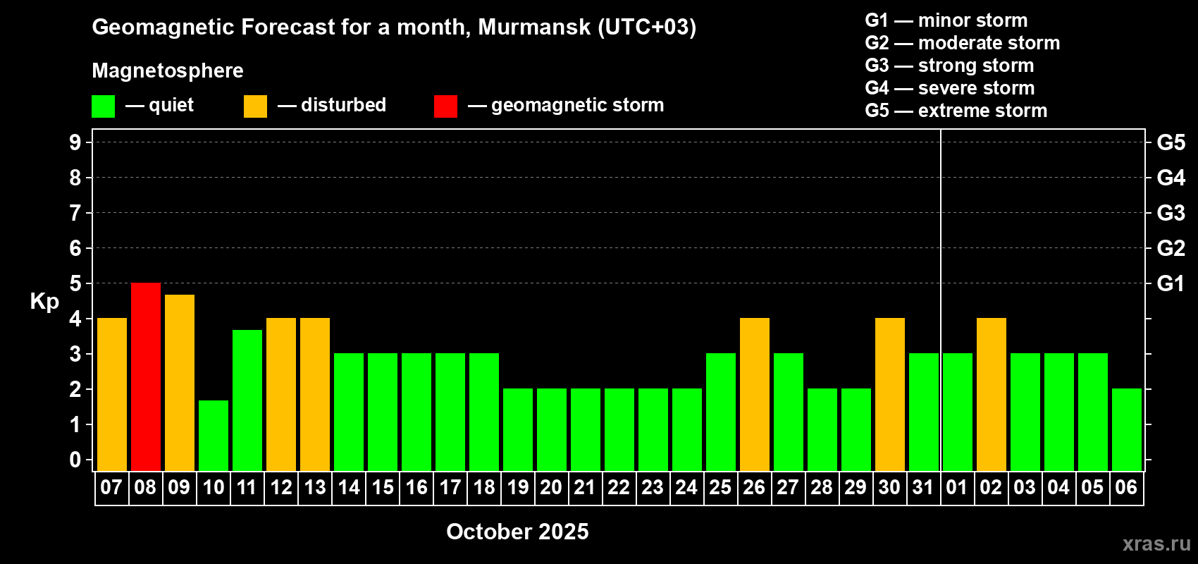 Geomagnetic storm forecast in Murmansk for Oct 07, 2025