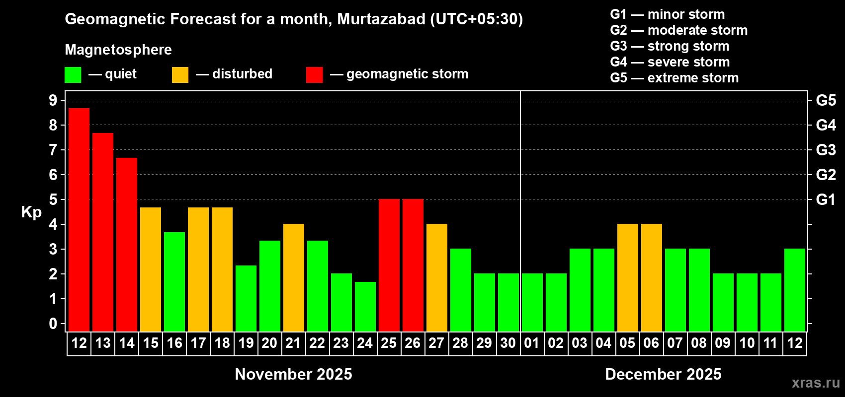 Geomagnetic storm forecast in Murtazabad for Nov 12, 2025