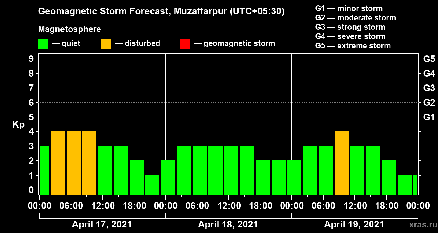 Geomagnetic storm forecast in Muzaffarpur for Apr 17, 2021