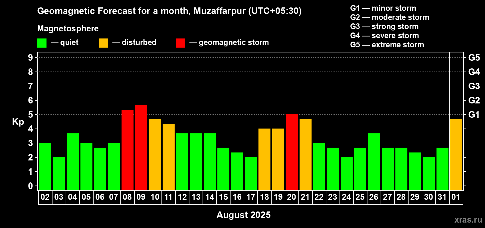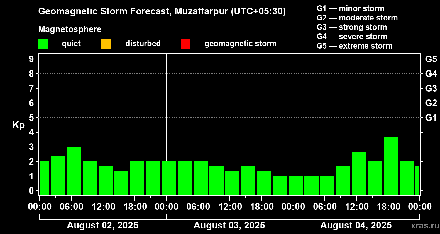 Geomagnetic storm forecast in Muzaffarpur for Aug 02, 2025