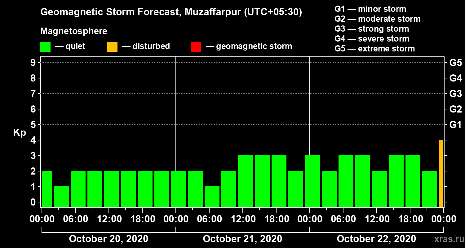 Geomagnetic storm forecast in Muzaffarpur for Oct 20, 2020