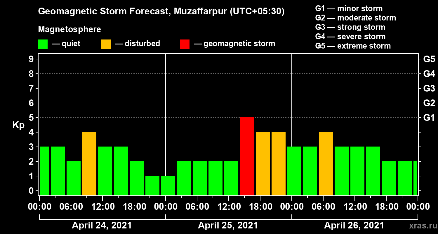 Geomagnetic storm forecast in Muzaffarpur for Apr 24, 2021