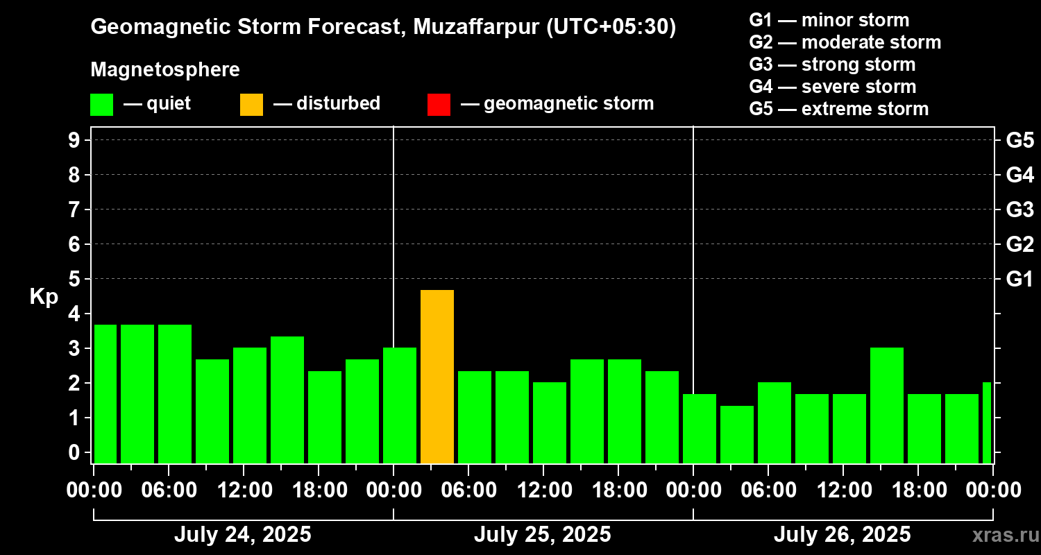 Geomagnetic storm forecast in Muzaffarpur for Jul 24, 2025