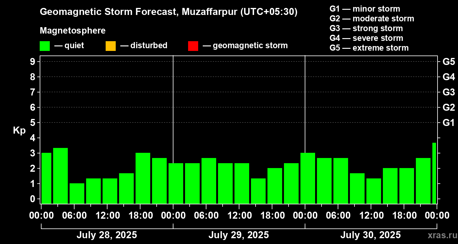 Geomagnetic storm forecast in Muzaffarpur for Jul 28, 2025