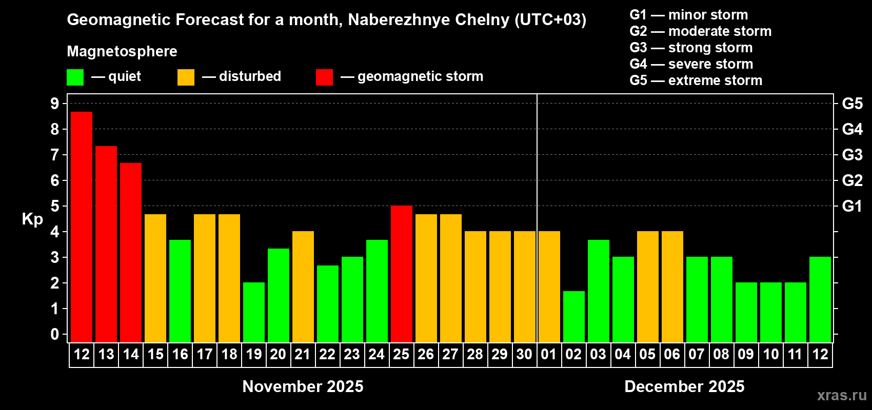 Geomagnetic storm forecast in Naberezhnye Chelny for Nov 12, 2025