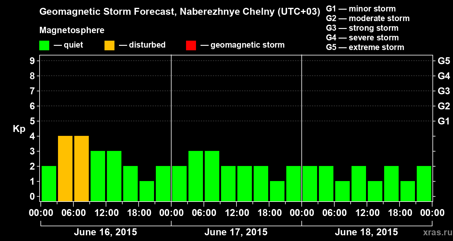 Geomagnetic activity forecast in Naberezhnye Chelny — Jun 16, 2015