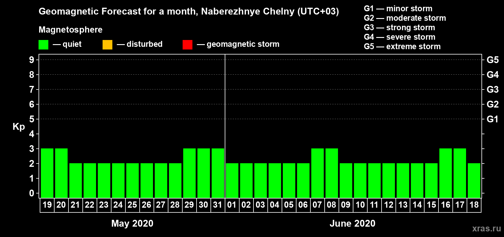 Geomagnetic activity forecast in Naberezhnye Chelny — May 19, 2020