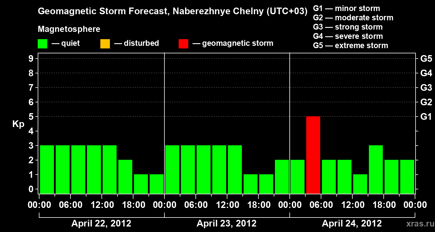 Geomagnetic activity forecast in Naberezhnye Chelny — Apr 22, 2012