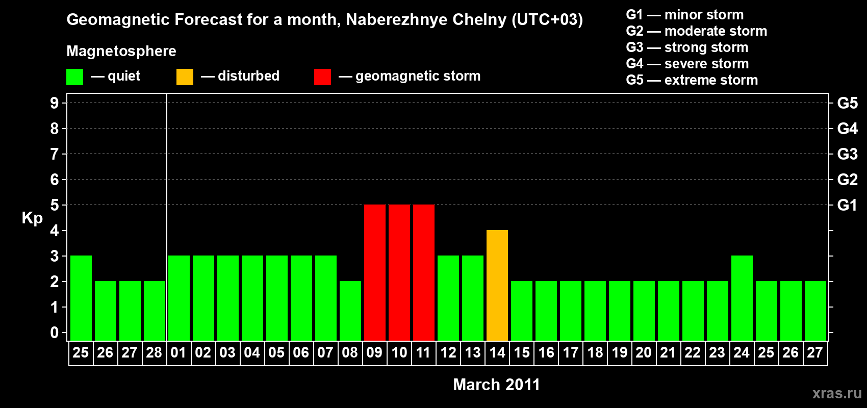 Geomagnetic activity forecast in Naberezhnye Chelny — Feb 25, 2011