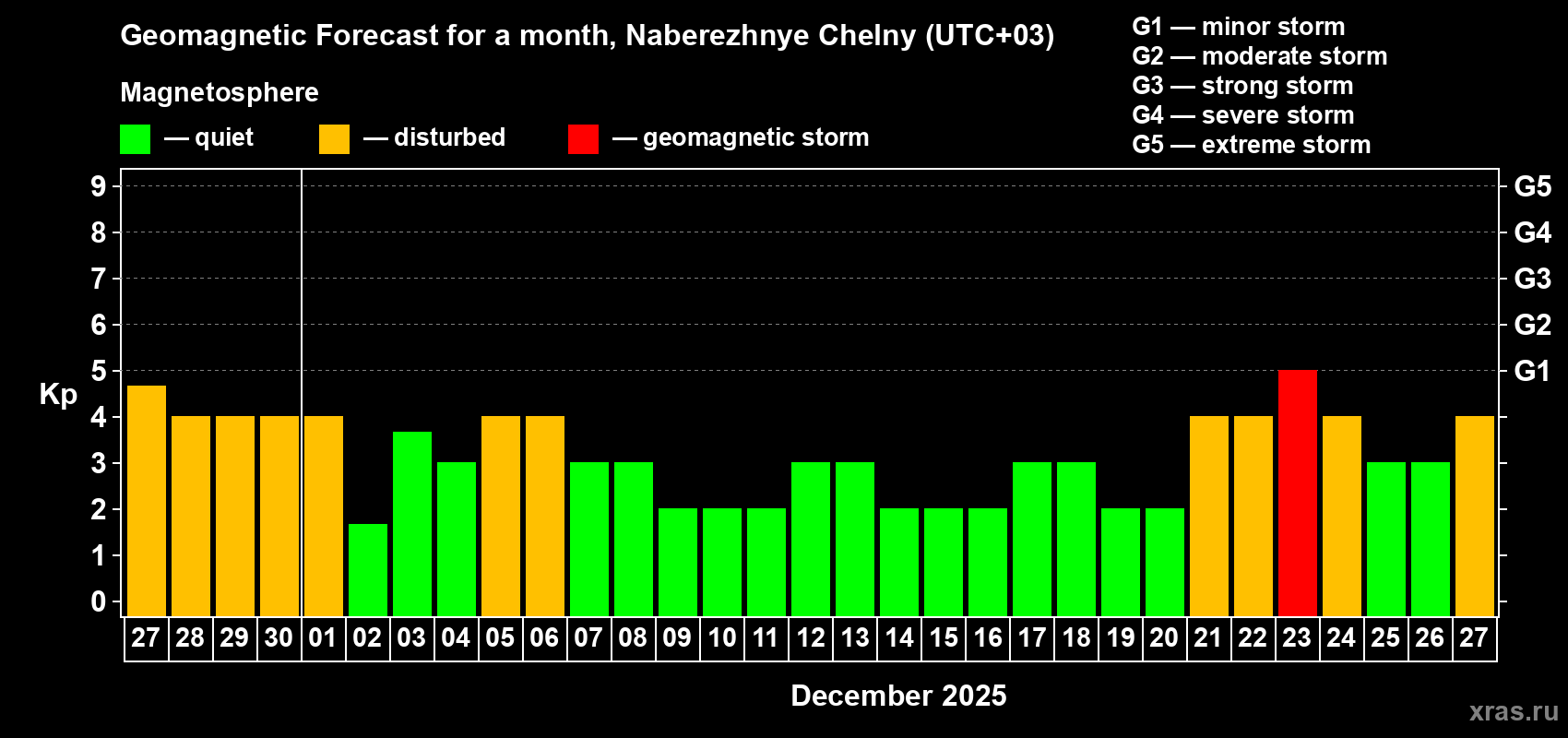 Geomagnetic storm forecast in Naberezhnye Chelny for Nov 27, 2025