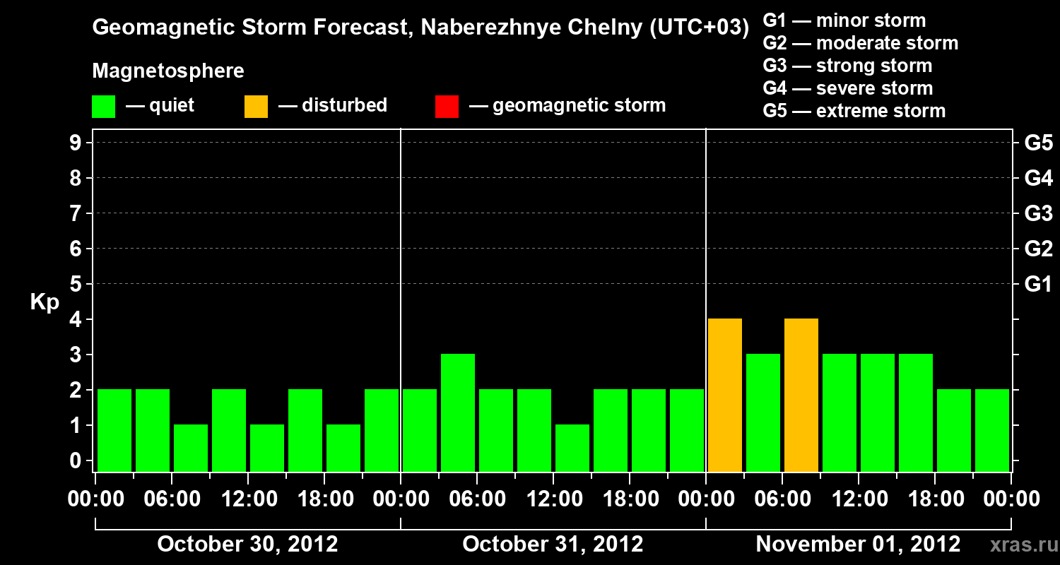 Geomagnetic activity forecast in Naberezhnye Chelny — Oct 30, 2012