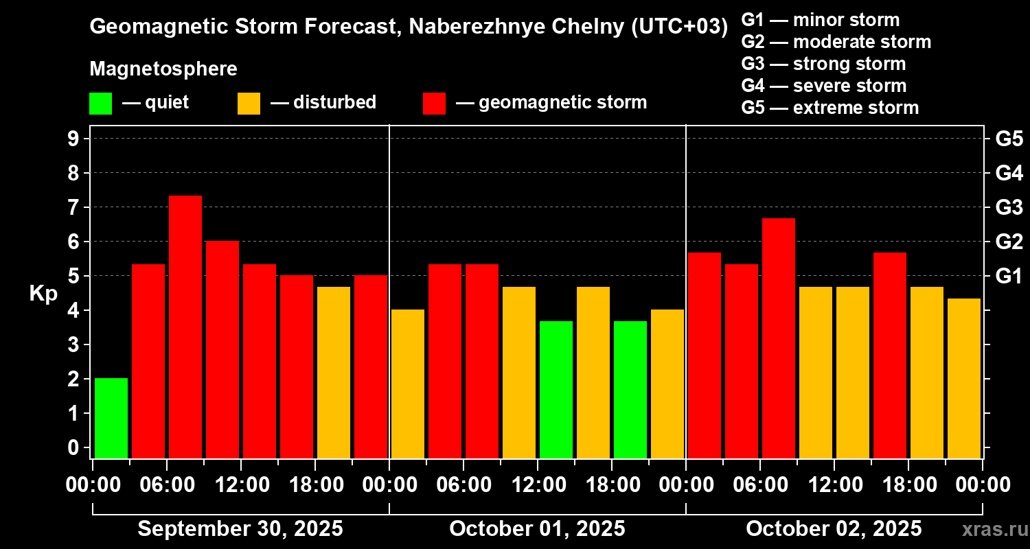 Geomagnetic storm forecast in Naberezhnye Chelny for Sep 30, 2025