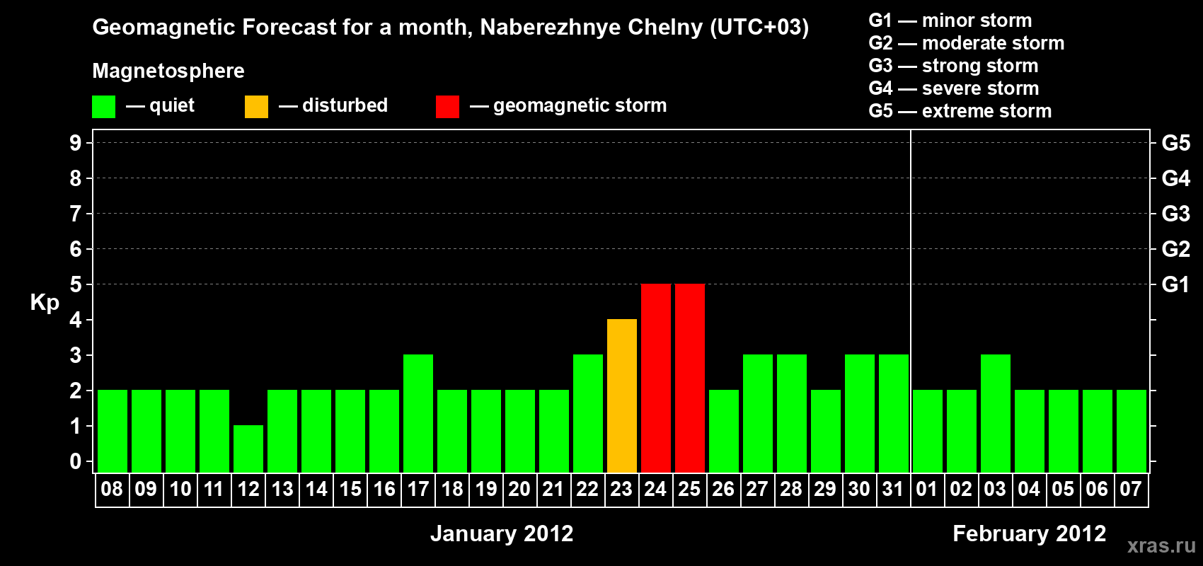 Geomagnetic storm forecast in Naberezhnye Chelny for Jan 08, 2012