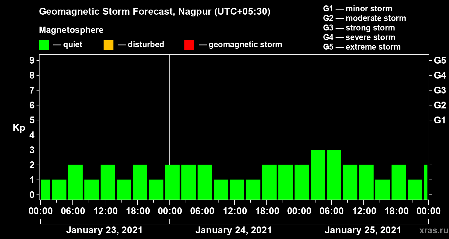 Geomagnetic storm forecast in Nagpur for Jan 23, 2021