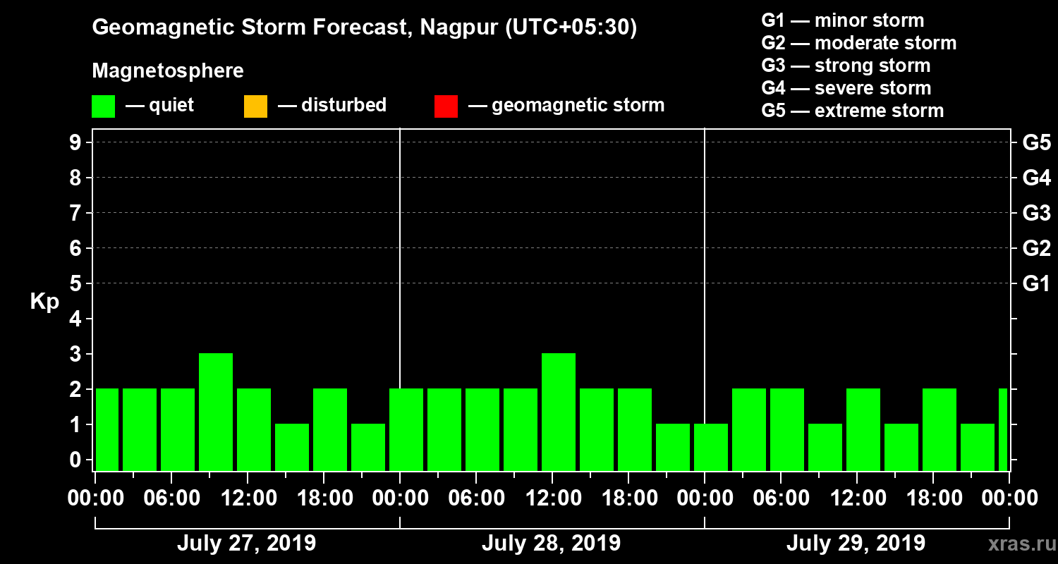 Geomagnetic storm forecast in Nagpur for Jul 27, 2019