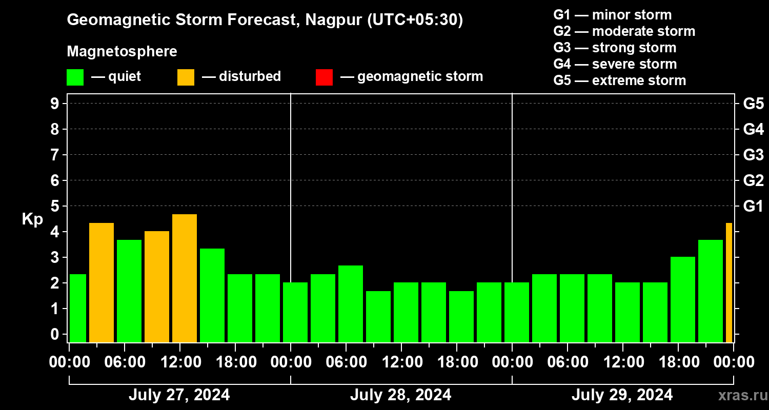 Geomagnetic storm forecast in Nagpur for Jul 27, 2024