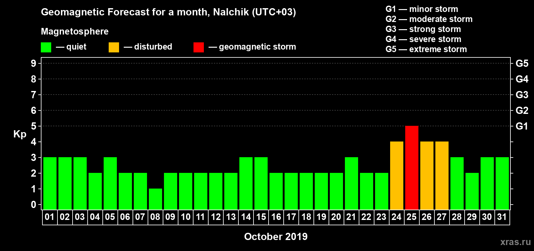 Geomagnetic storm forecast in Nalchik for Oct 01, 2019