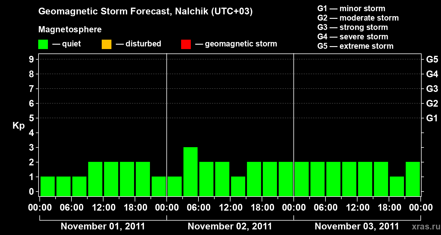 Geomagnetic storm forecast in Nalchik for Nov 01, 2011