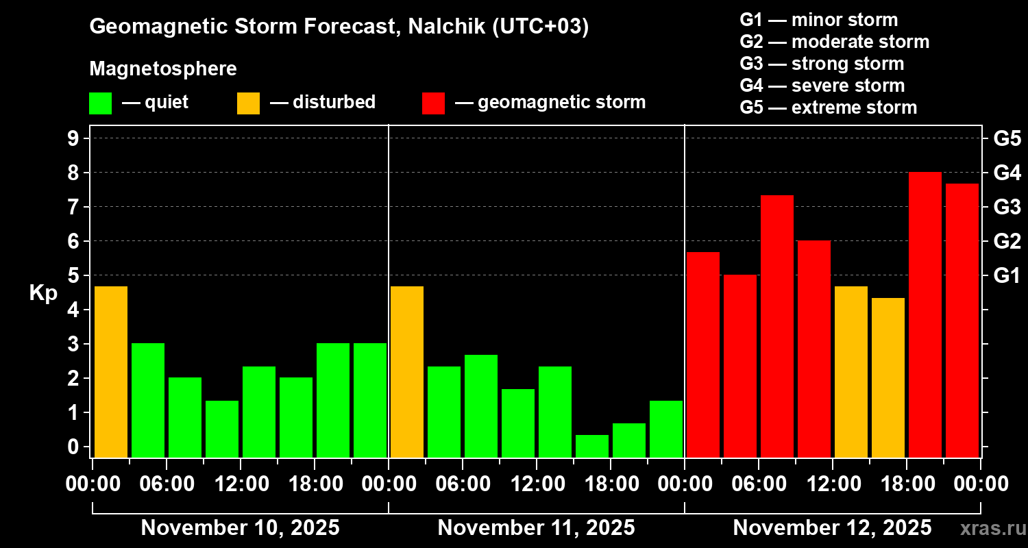 Geomagnetic storm forecast in Nalchik for Nov 10, 2025