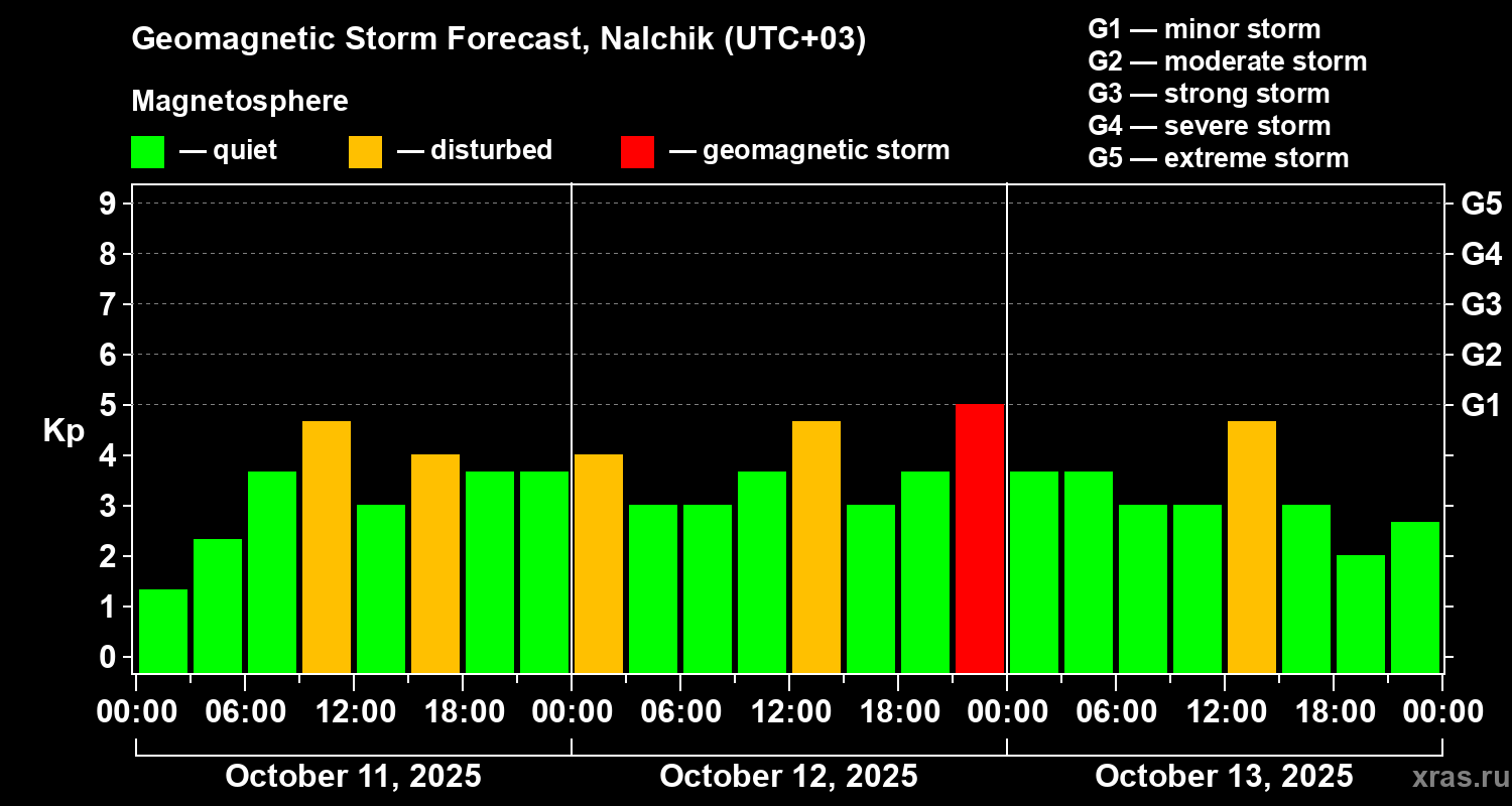 Geomagnetic storm forecast in Nalchik for Oct 11, 2025