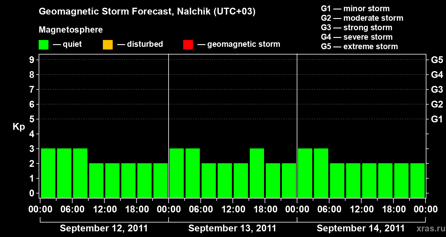 Geomagnetic storm forecast in Nalchik for Sep 12, 2011