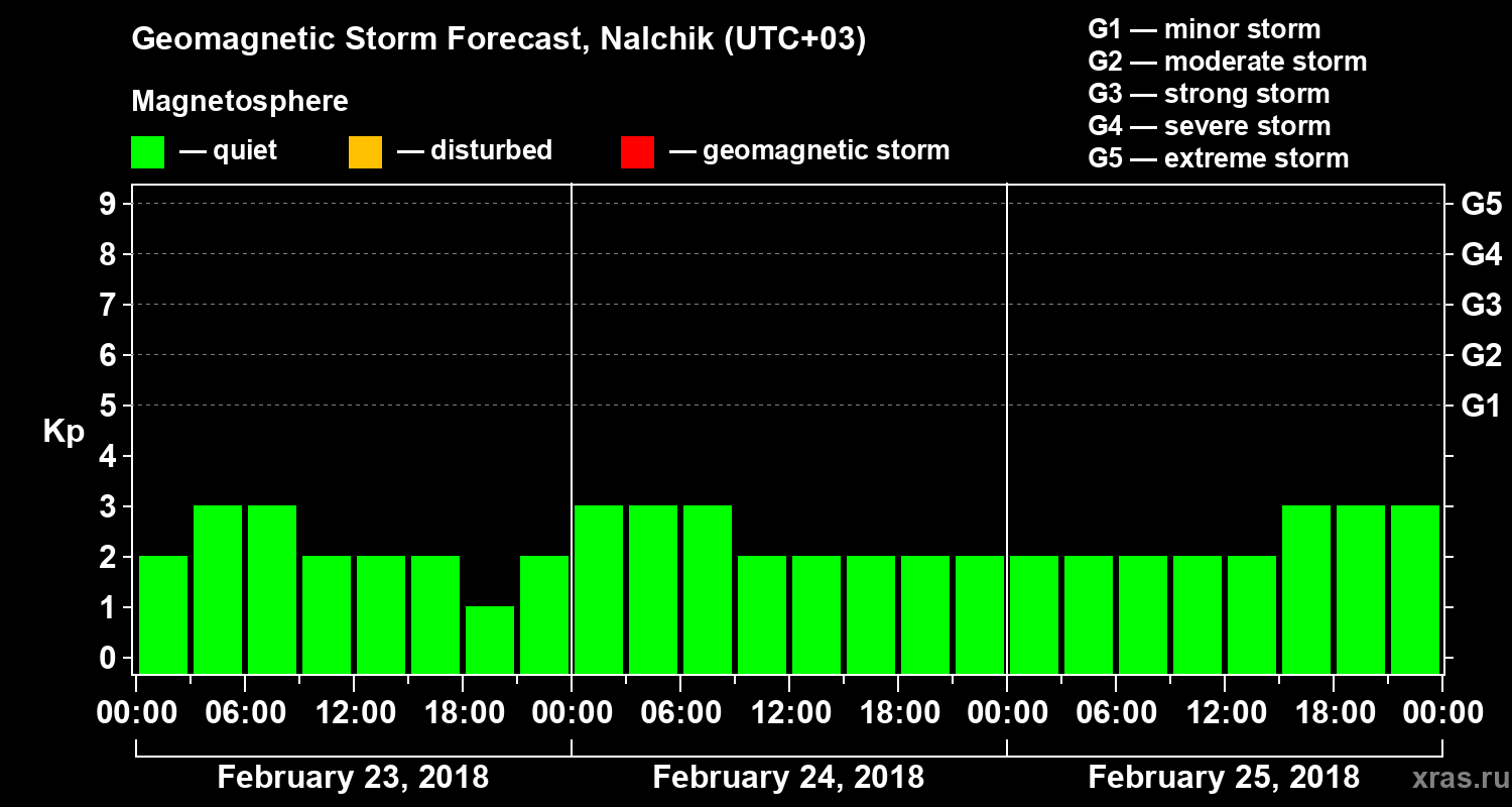 Geomagnetic storm forecast in Nalchik for Feb 23, 2018