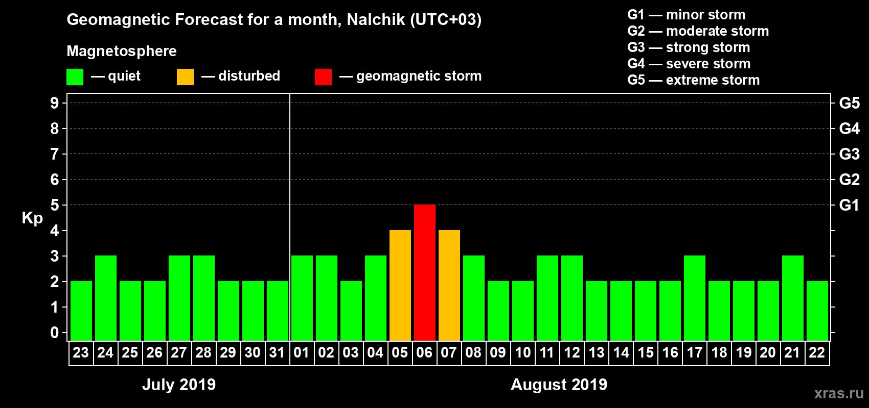 Geomagnetic storm forecast in Nalchik for Jul 23, 2019