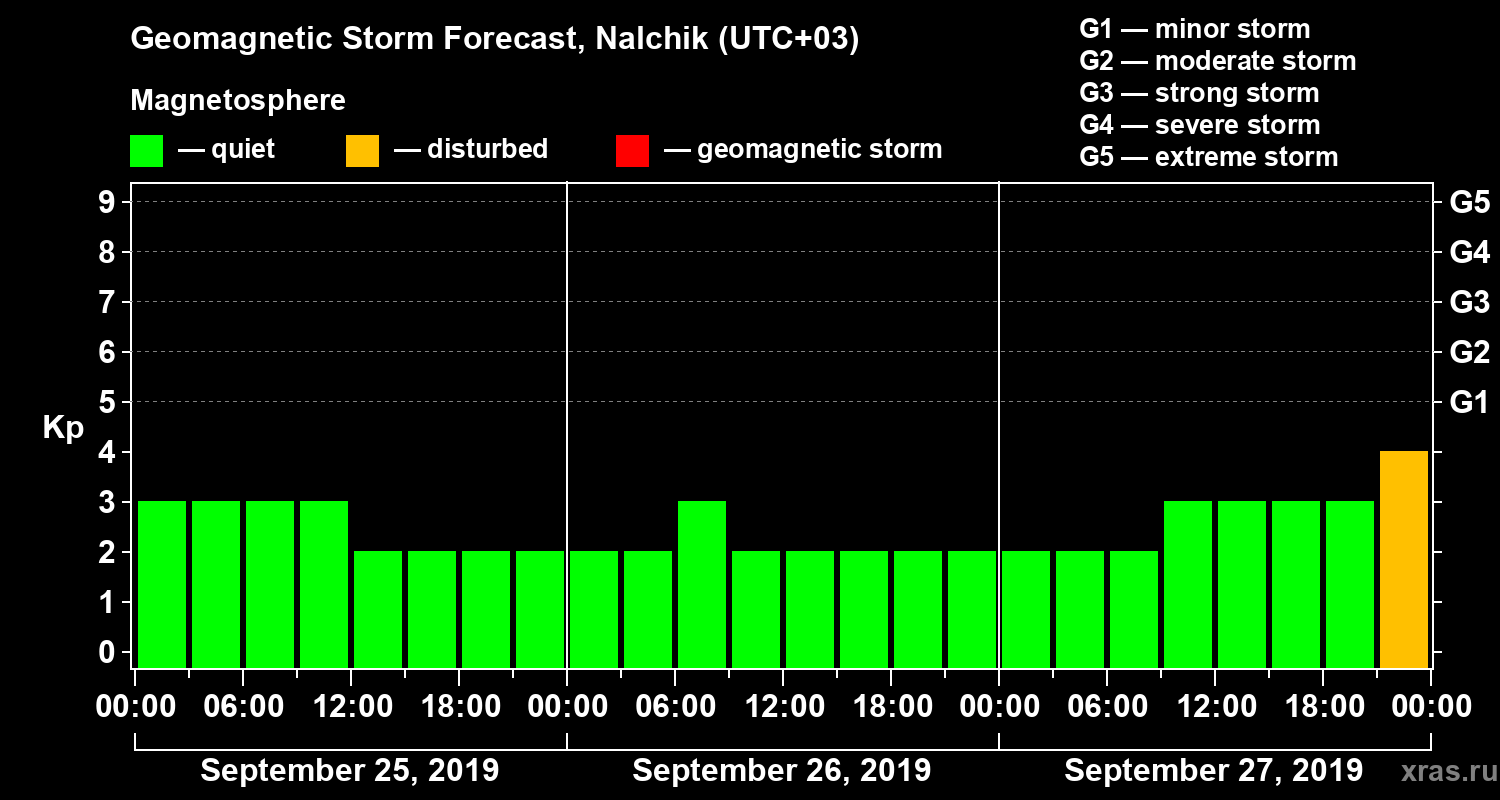 Geomagnetic storm forecast in Nalchik for Sep 25, 2019