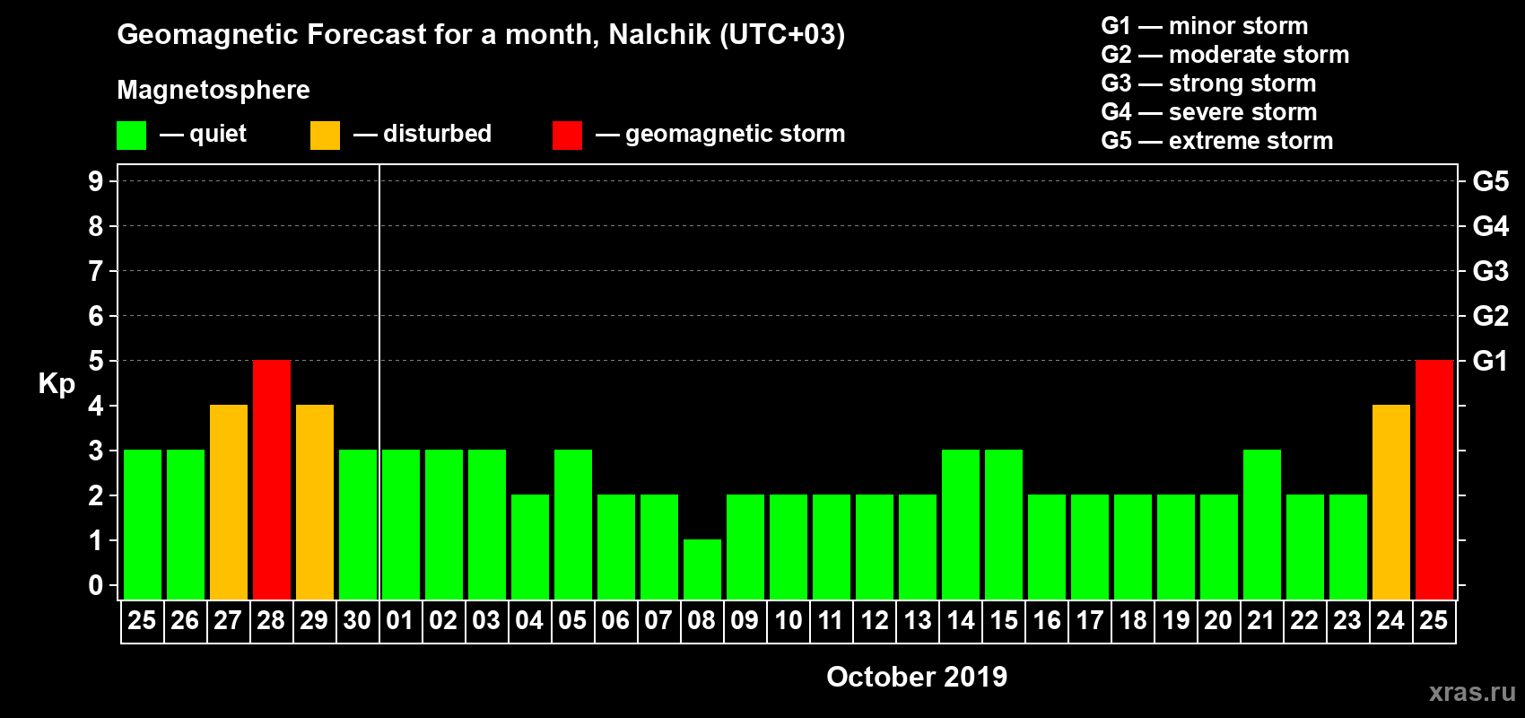 Geomagnetic activity forecast in Nalchik — Sep 25, 2019