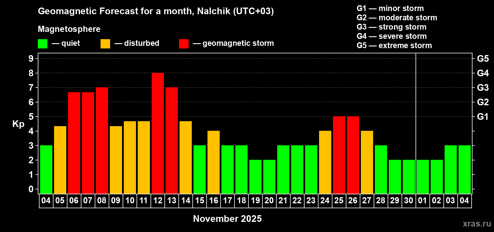 Geomagnetic storm forecast in Nalchik for Nov 04, 2025