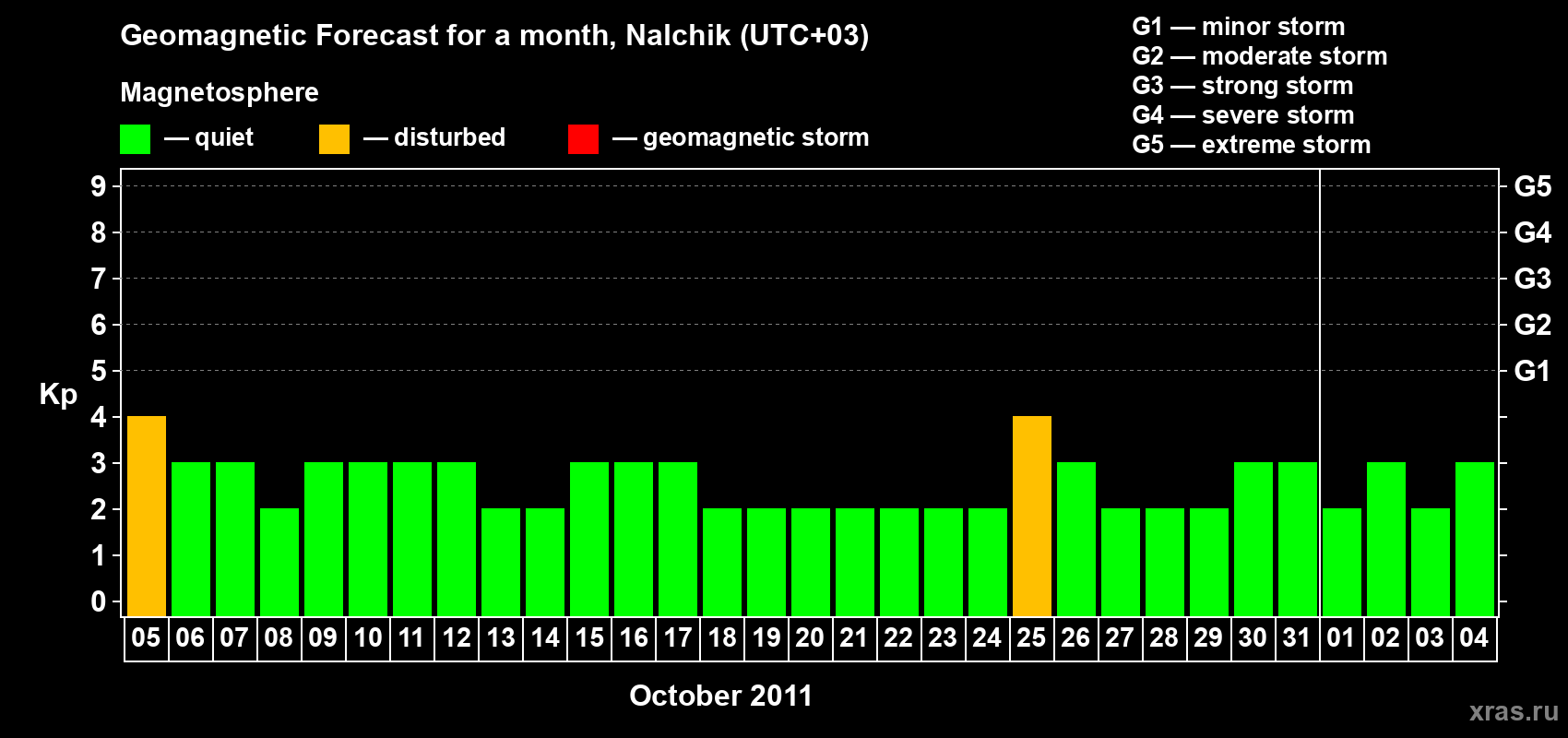 Geomagnetic storm forecast in Nalchik for Oct 05, 2011