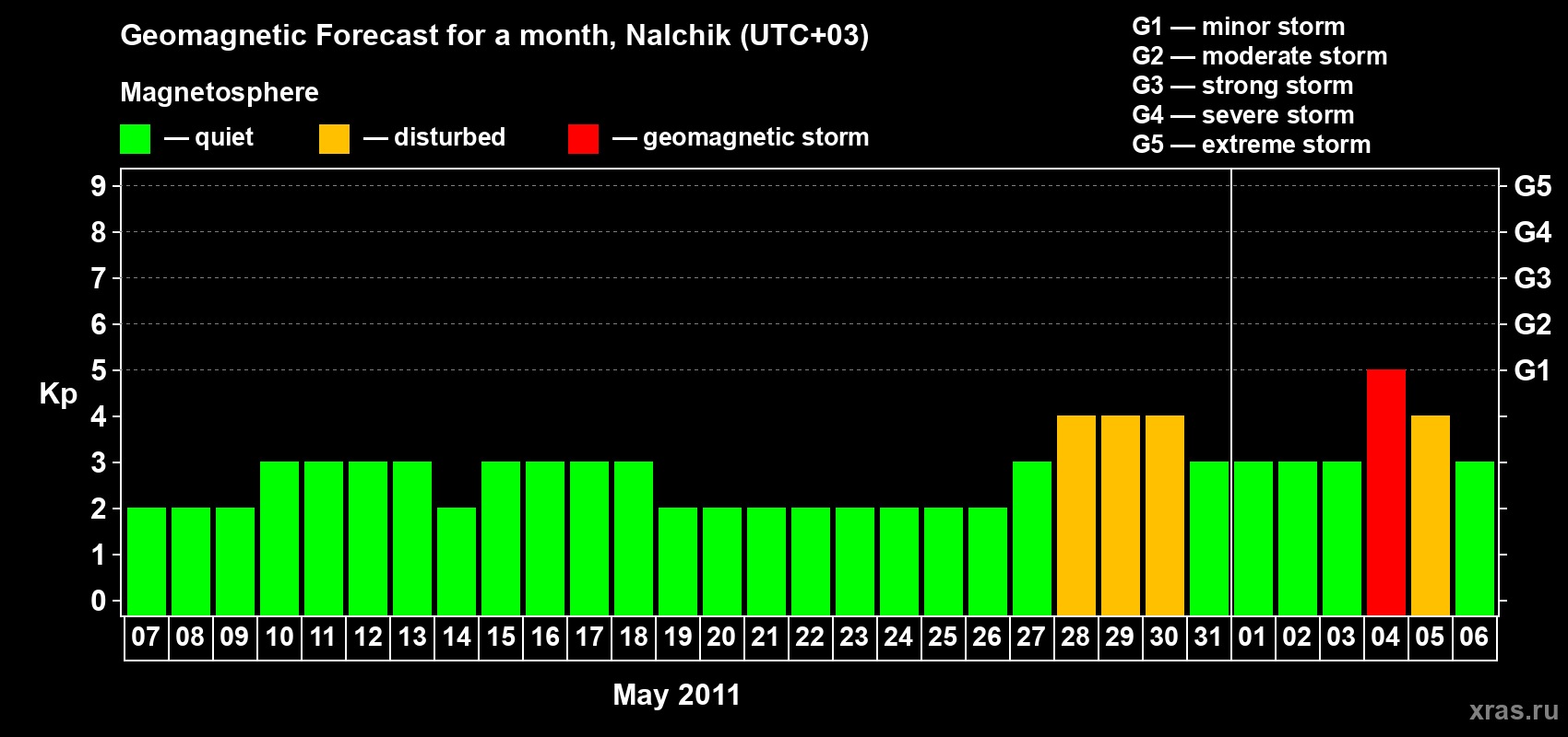 Geomagnetic activity forecast in Nalchik — May 07, 2011