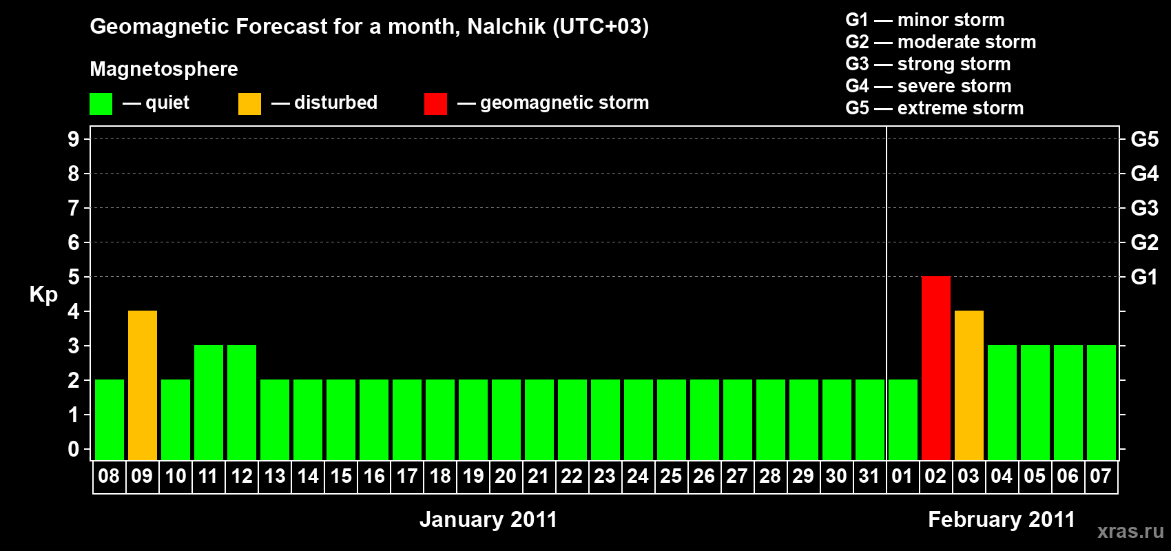 Geomagnetic storm forecast in Nalchik for Jan 08, 2011